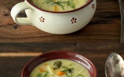 Jak zrobić kremową zupę ziemniaczaną z kiszonymi ogórkami? Składniki: 1 cebula, drobno posiekana 2 łyżki oliwy z oliwek 3 ziemniaki,…
