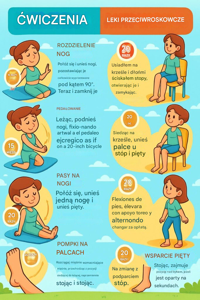 🔸 Pedałowanie (15 powtórzeń): Symuluj ruch pedałowania w powietrzu, idealny do pobudzania krążenia.