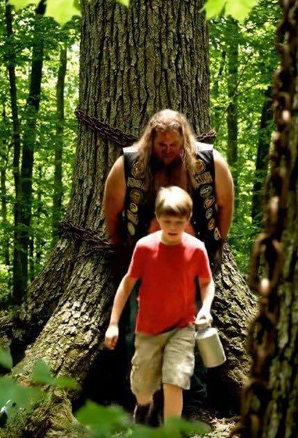 A na plecach jego skórzanej kamizelki znajdowała się naszywka, która sprawiała, że dorośli mężczyźni przechodzili na drugą stronę ulicy ze strachu: Hells Angels.