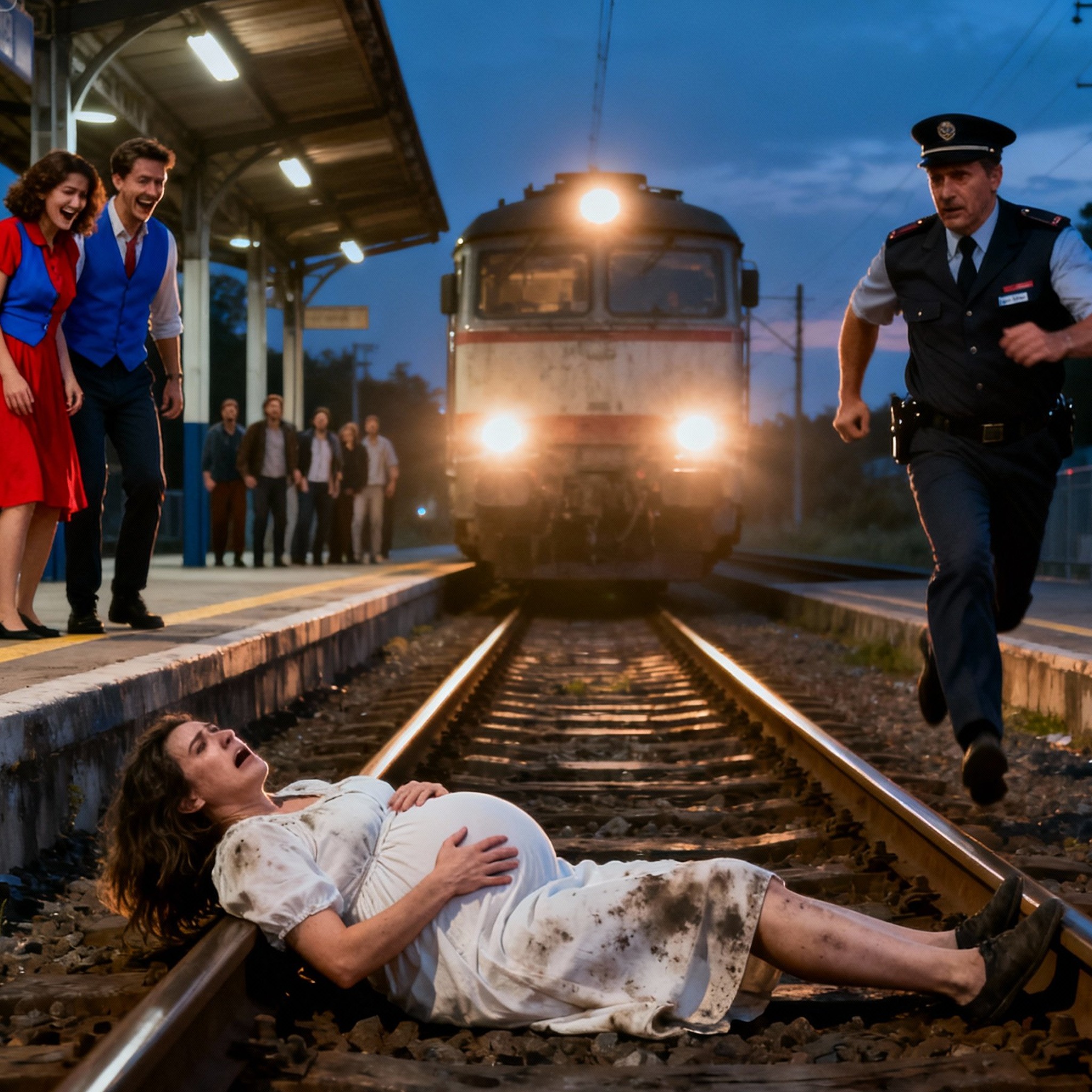 A potem – gdy pociąg się zbliżał – mężczyzna w mundurze wyskoczył z peronu, chwycił Emmę za ramię i szarpnął ją, odciągając na bok.