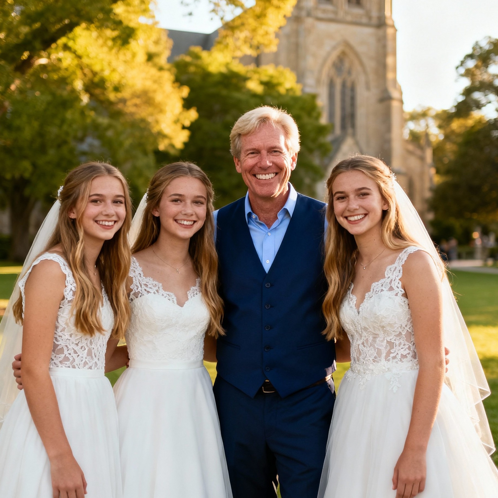 Ethan stał na końcu wielkiej sali przyjęć, ubrany w prosty czarny garnitur. Sala lśniła żyrandolami i białymi różami – widok, w który ledwo mógł uwierzyć, że jest prawdziwy. Patrzył, jak jego siostry, promienne w swoich sukniach, idą ramię w ramię do ołtarza.