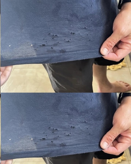 Przyczyna: Otwory w dolnej części koszuli (szczególnie na biodrach) są często spowodowane tarciem od klamer paska, guzików dżinsów lub zamków błyskawicznych. Dzieje się tak, gdy koszula podwija się i ociera o te twarde powierzchnie podczas ruchu.