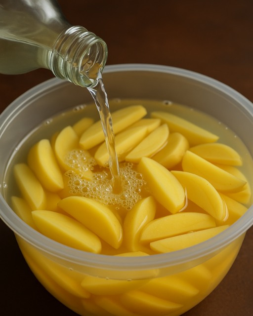 Dodaj kilka kropli soku z cytryny do wody, w których moczyłeś ziemniaki, przed suszeniem, aby uzyskać dostępszy, smaczniejszy smak.