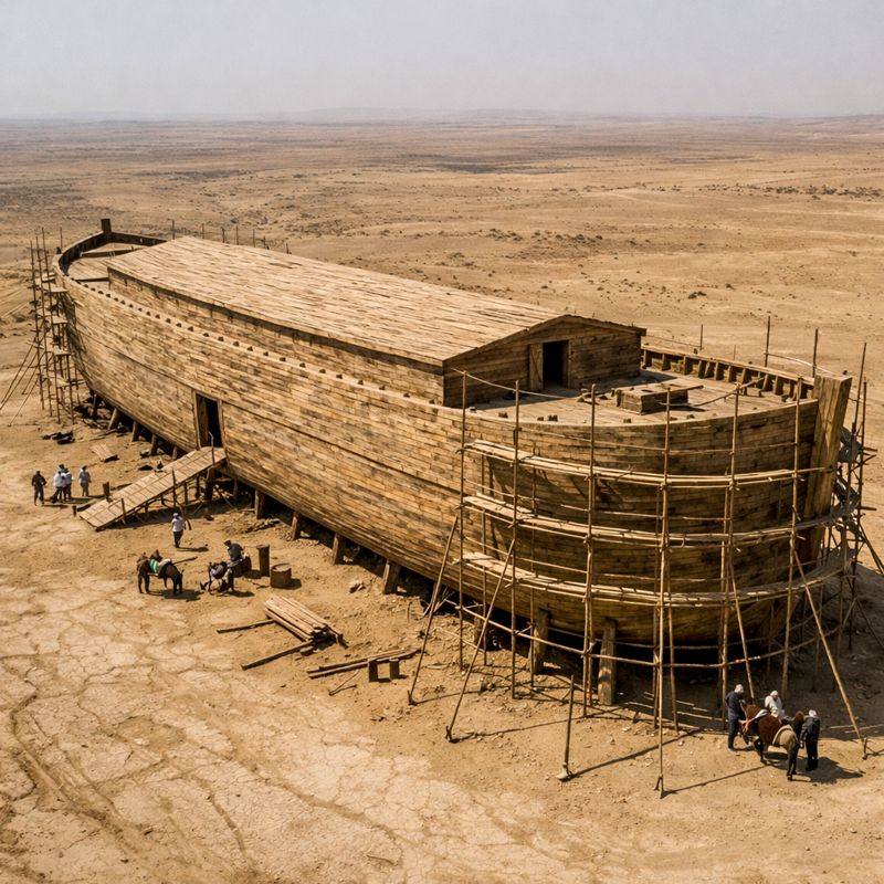 Zanim Noe położył pierwszą belkę, musiał przygotować grunt. Bóg powiedział mu, gdzie ma zbudować Arkę – na suchym, stabilnym terenie, z dala od morza. To była część próby wiary: Noe budował gigantyczny statek w miejscu, gdzie nikt nigdy nie widział globalnego potopu.