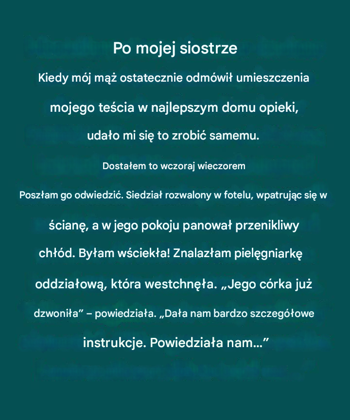 To właśnie mnie udało się w końcu załatwić ojczymowi miejsce w domu opieki najwyższej klasy – po tym, jak siostra mojego zmarłego męża kategorycznie odmówiła pomocy.