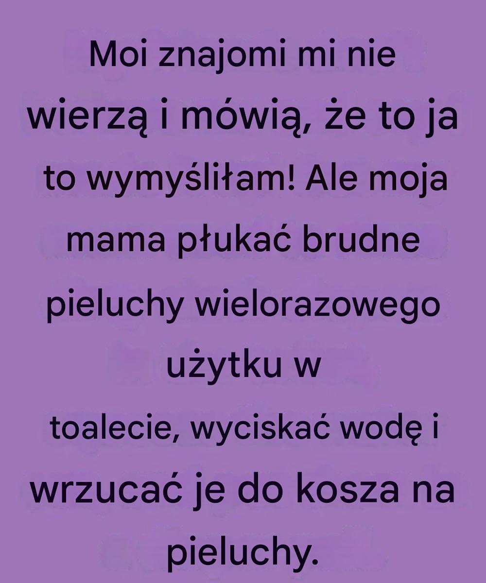 Płukała je, wykręcała gołymi rękami, a potem wrzucała do kosza na pieluchy, aż do dnia prania. Opowiedziałam o tym moim koleżankom i o mało nie oszalały. Tymczasem ja myślałam sobie: „No tak… to był po prostu normalny dzień w moim domu”.