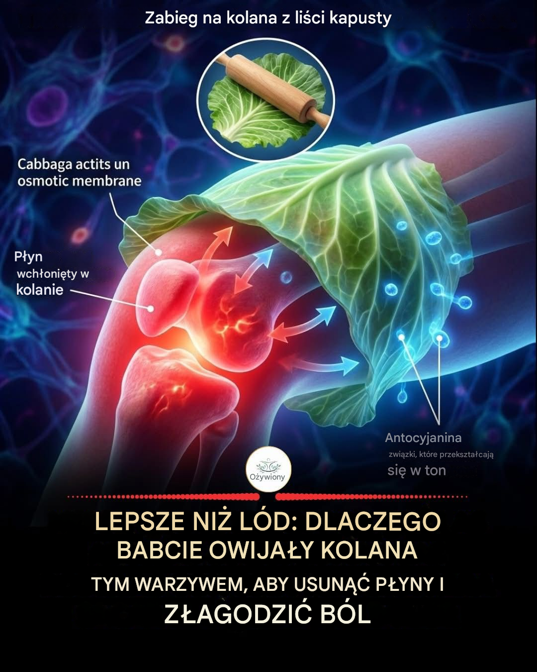 Dlaczego to działa? Kapusta (zwłaszcza zielona i fioletowa) jest bogata w glutaminę, sulforafan i antocyjany. Związki te mają silne właściwości przeciwzapalne. Po naderwaniu nerwów liścia i przyłożeniu go do skóry, soki roślinne przenikają przez skórę. Dodatkowo, liść działa na zasadzie osmozy, pomagając w odprowadzaniu nadmiaru płynu (obrzęku) z opuchniętego stawu lub przekrwionej piersi (zapalenie sutka w okresie laktacji).