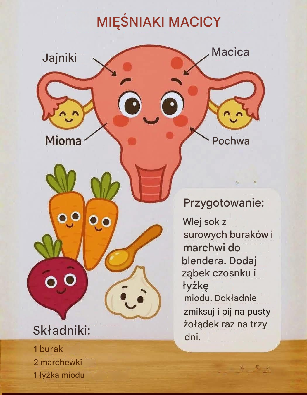 Składniki i sposób przygotowania: Naturalna mieszanka z buraków, marchwi, czosnku i miodu dostarcza witamin , przeciwutleniaczy i związków przeciwzapalnych, które korzystnie wpływają na ogólne samopoczucie kobiet.