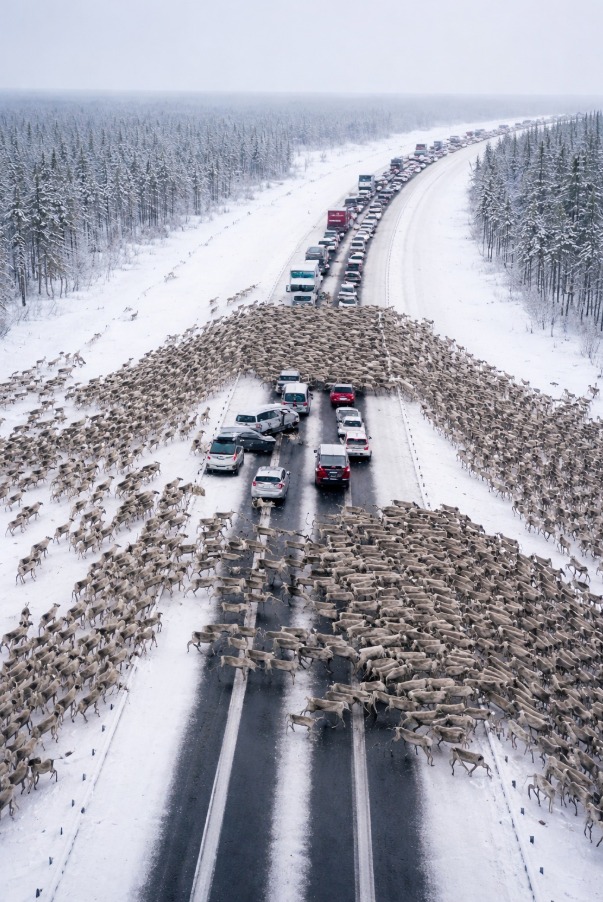 Dziwne jest to, że jest bardzo dźwiękowe. Głęboki i przeciągły, jakby coś runęło gdzieś głęboko w lesie. Kierowcy stali się czujni, zaczęli zwalniać, wymieniając spojrzenie. I zaledwie kilka sekund później na autostradę wbiegł pierwszy renifer.