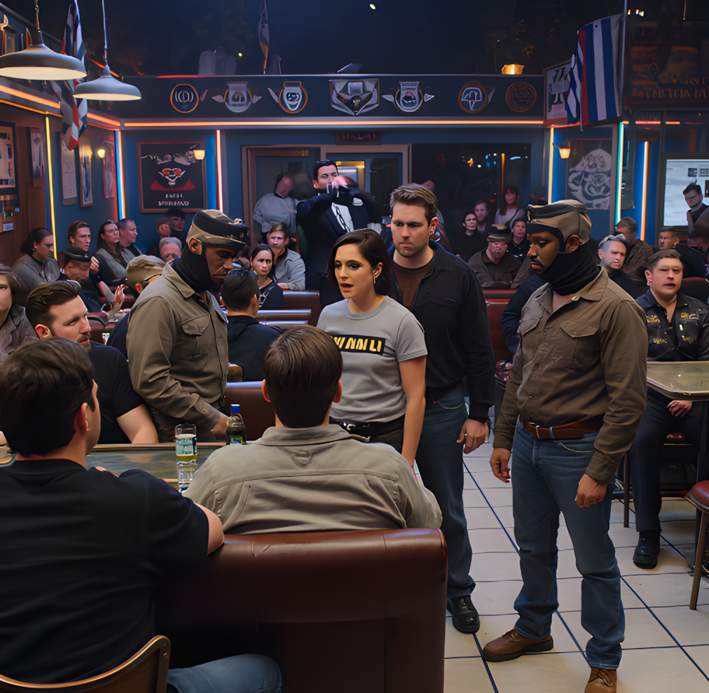 Czterech jego kolegów z SEAL wybuchnęło śmiechem, przybijając sobie piątki z powodu występu kolegi. Cały bar, ponad pięćdziesięciu klientów – głównie wojskowych i weteranów – odwróciło się, by obserwować rozwój sytuacji. Telefony zaczęły wysuwać się z kieszeni, a ekrany rozświetlały się w oczekiwaniu.