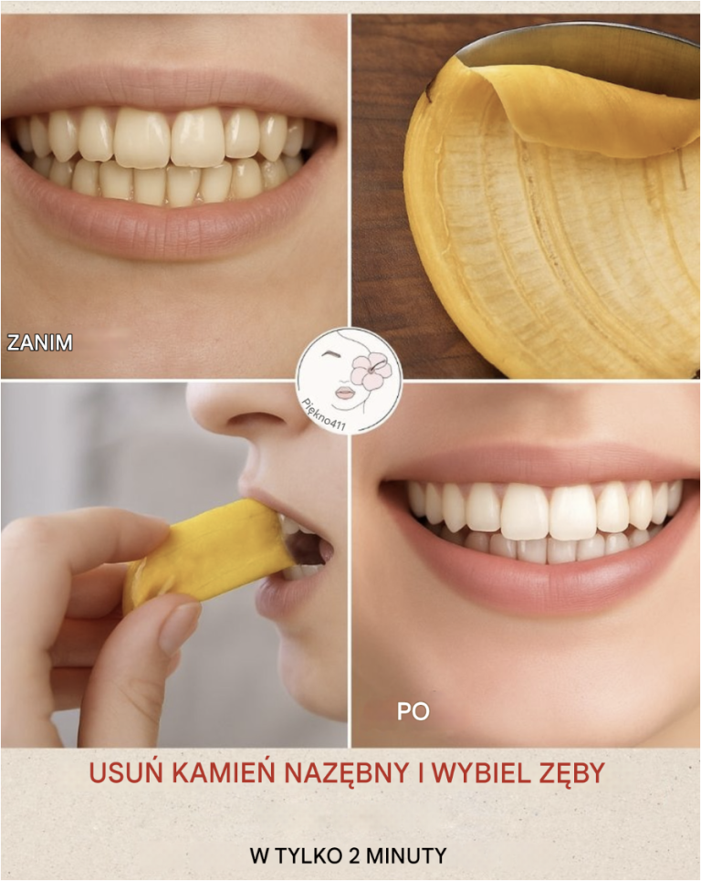 Nie ma ucieczki przed środkami ściernymi, aby uzyskać bielszy uśmiech. Potas i magnez spoczywa w skórkach bananów, polerując zęby. Pocieraj je przez dwie minuty dziennie: delikatny gest dla widocznie jaśniejszych zębów.