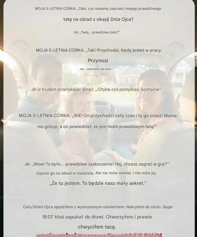 Mówiła urywanymi zdaniami, które tylko dziecko potrafiłoby rozszyfrować – krótkie momenty, gdy byłem w pracy, ktoś, kogo uważała za przyjaciela, szczegóły, które nie pasowały do naszej codziennej rutyny. Nie rozumiała znaczenia swoich słów ani tego, kto je wypowiadał. Po prostu opisywała to, co widziała.