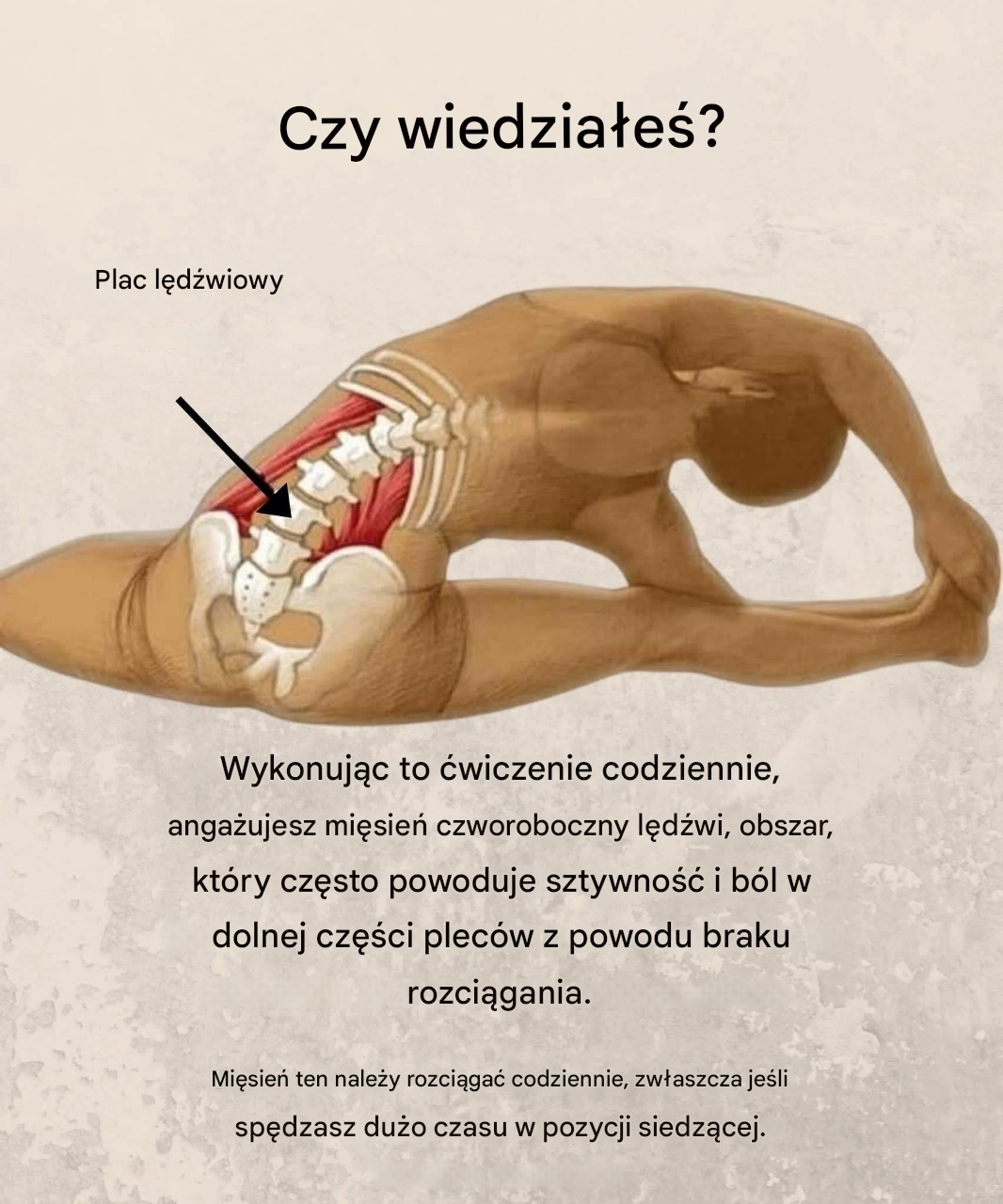 Według Narodowych Instytutów Zdrowia (NIH) mięsień czworoboczny lędźwi odpowiada za stabilność kręgosłupa i może powodować ból, gdy jest napięty lub przeciążony.