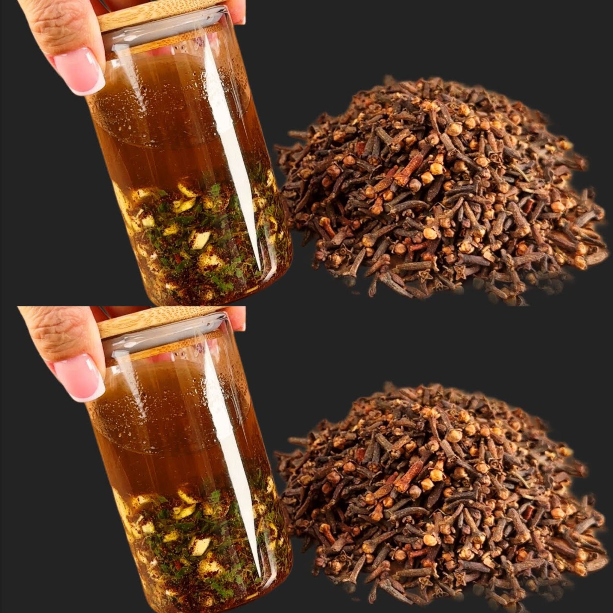 - Płukanie goździków: Przygotuj mocną herbatę z goździków i wody i używaj jej jako płynu do płukania jamy ustnej po regularnym myciu szamponem. Może to stymulować skórę głowy i zmniejszać wypadanie włosów, dzięki antyseptycznym właściwościom goździków, które pomagają zwalczać infekcje skóry głowy, które często są odpowiedzialne za wypadanie włosów.