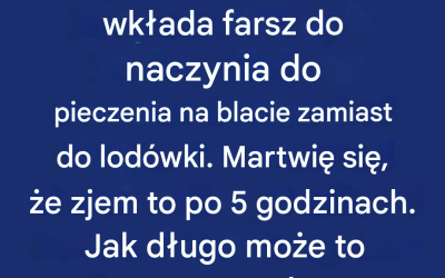 Mój przyjaciel zawsze wkłada farsz do naczynia do pieczenia na blacie zamiast do lodówki. Martwię się, że zjem to po 5 godzinach. Jak długo może to bezpiecznie leżeć na zewnątrz?