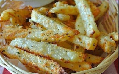 Pieczone w piekarniku frytki z czosnkiem i parmezanem