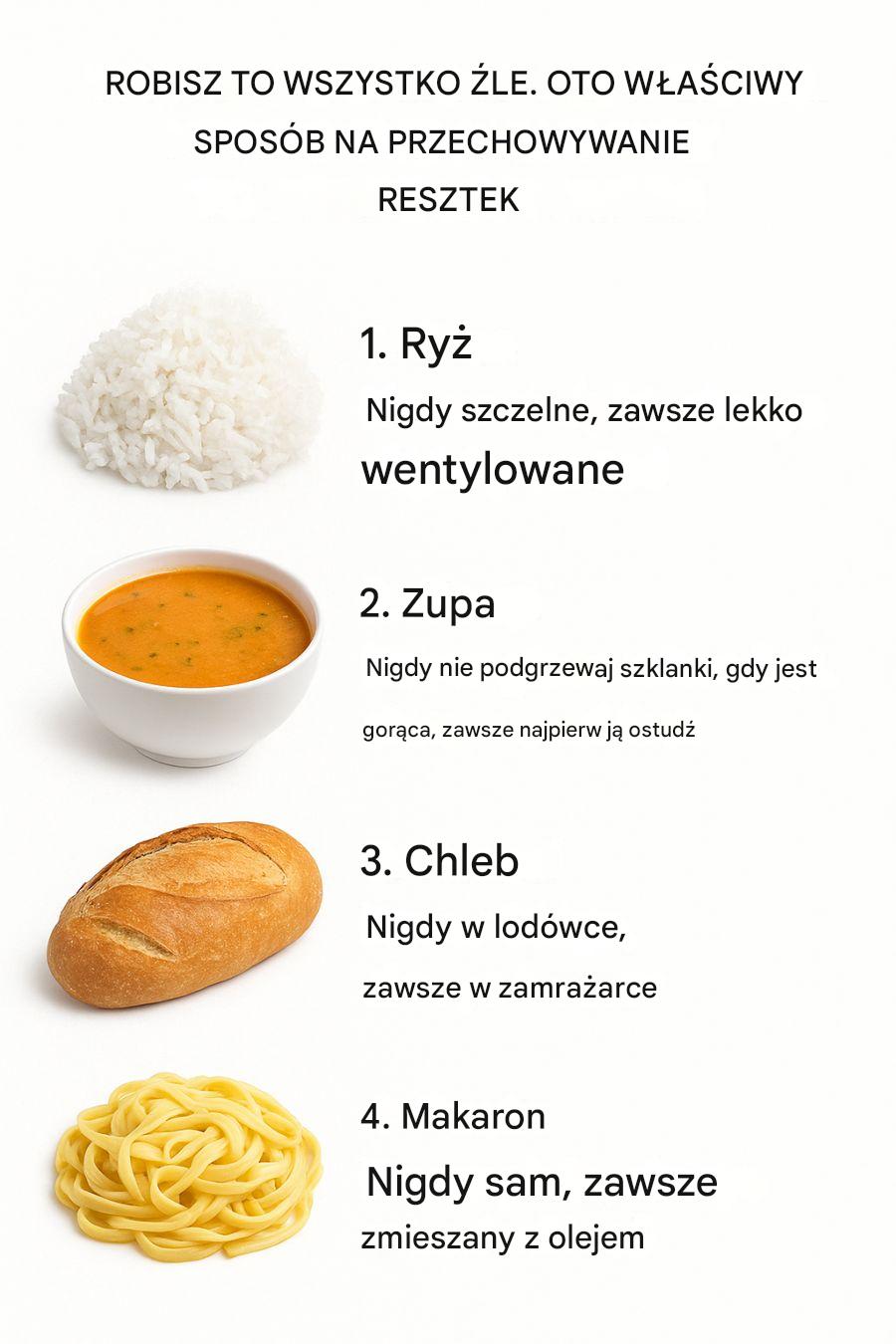 Aby bezpiecznie przechowywać ryż, należy pozwolić mu szybko ostygnąć i przełożyć do pojemnika z luźno dopasowaną pokrywką lub pojemnika z lekkim otworem wentylacyjnym. Takie rozwiązanie pozwala na ujście wilgoci, zmniejszając ryzyko rozwoju bakterii. Przechowywany ryż należy spożyć w ciągu jednego do dwóch dni i upewnić się, że został dokładnie podgrzany przed spożyciem.