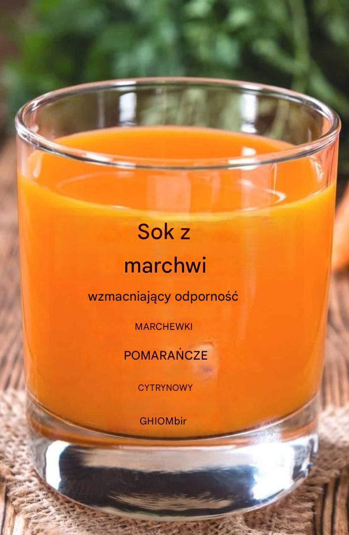- Pomarańcza – słynie z wysokiej zawartości witaminy C. Nadaje sokowi przyjemny, słodko-kwaśny smak i wspiera układ odpornościowy oraz kondycję skóry. Naturalne cukry równoważą ziemisty smak marchwi.