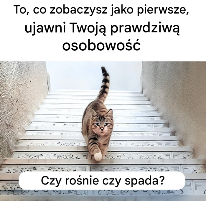Weźmy prosty i kultowy przykład z Internetu: zdjęcie kota na schodach. Pytanie jest proste: czy dziesięć kot idzie w górę, czy w dół? A jednak, w zależności od odpowiedzi, interpretacja może być całkowicie inna.