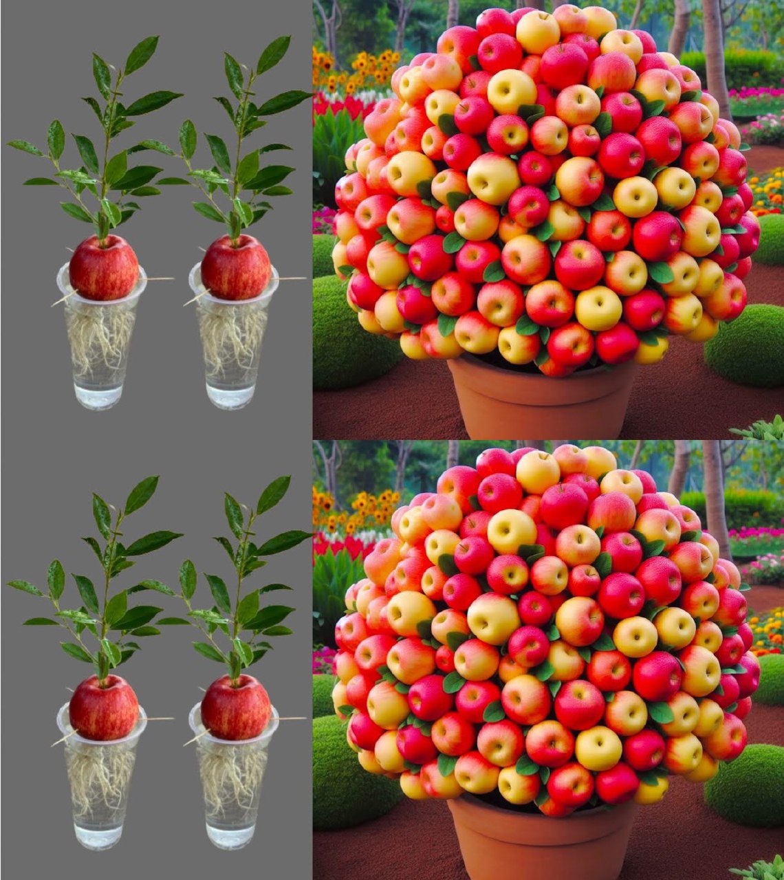 Sadzonka jabłoni: Wybierz odpowiednią odmianę jabłoni karłową lub półkarłową, która dobrze rośnie w doniczce.